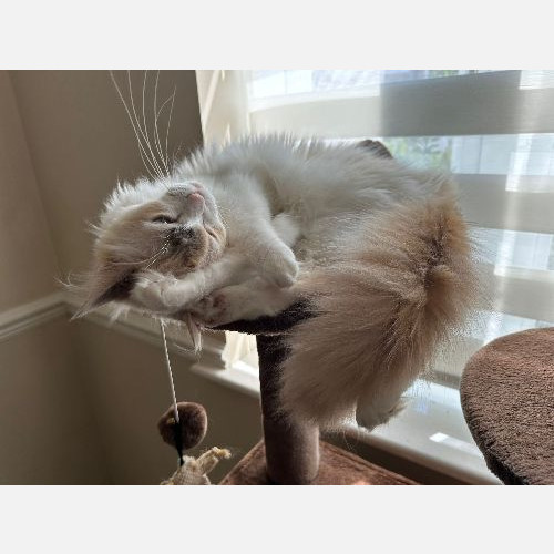 Nala is a beautiful, playful young cat, who loves her person's company. Nala might need a moment and a bit of space to get to know a person, but once she's comfortable, she enjoys sitting in your lap and playing with her person. With Nala, as with any animal, it's important you approach her calmly without intruding her space, and let her approach you. Otherwise Nala isn't scared of anything. Nala is the kind of cat who will keep you company, watching the outside life through a window while her person is working or doing chores. Nala is still not too dependant on a person, and is happy to play and relax while her person is away. Nala is great with kids. Nala is mainly an indoor cat, but sometimes enjoys a supervised play in the garden.